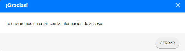 Cuando presione enviar saldrá un mensaje indicando que le enviaremos un correo como la siguiente imagen.