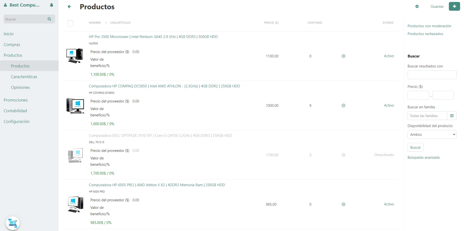 Puede cambiar el precio del producto, el precio de lista, la cantidad y el estado en la lista de productos. Si cambia algo que no sea el estado, asegúrese de usar el botón Guardar antes de salir de la página.